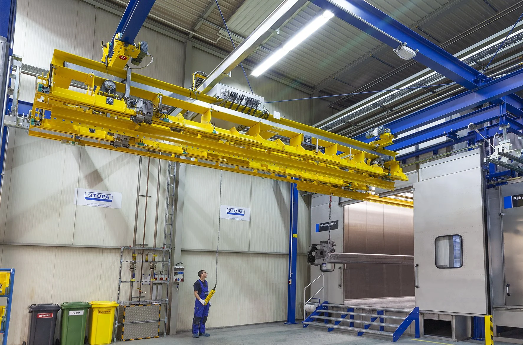 Verschiebebrücken verbinden parallel angeordnete Strecken und Stationen auf engstem Raum. Sie bewegen Lasten zuverlässig quer über die Produktions- oder Lagerfläche, manuell oder vollautomatisiert. Die Traglasten sind skalierbar, modular erweiterbar, wartungsarm und sicher – besonders in beengten Hallenlayouts.